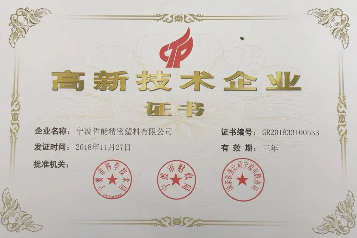 祝贺宁波哲能精密塑料有限公司荣获“国家高新技术企业”称号